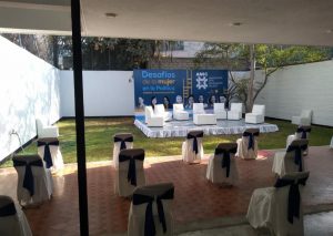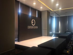Mamparas para presencia de marca y entarimados para decoración de congresos en hoteles y salones de conferencias y capacitación. Así como Muros Publicitarios BTL, Backs para Alfombra Roja, Photo Opportunity y Presswall